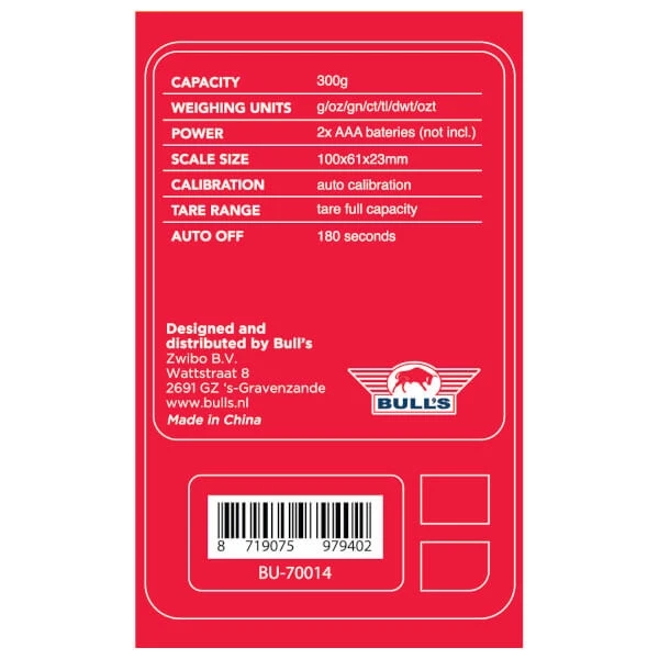 Med Bull’s digitalvægt kan du veje både dartpile og tilbehør med høj præcision, så dit setup altid er perfekt afbalanceret og klar til konkurrence.