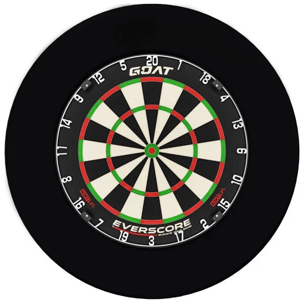 En stærk allround dartskive kombineret med en stilren sort beskyttelsesring.