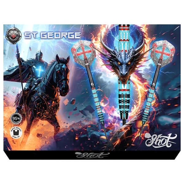 Inspireret af legenden om dragedræberen St. George kombinerer dartpilen et markant, næsten middelalderligt udtryk med moderne præcisionshåndværk.