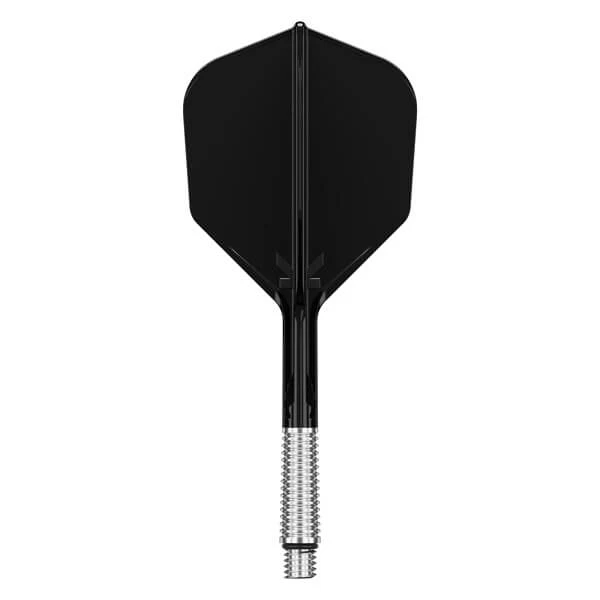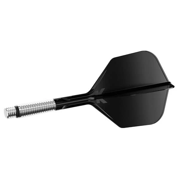 Basen på skaftet er fremstillet i let aluminium med radiale riller for bedre greb ved montering og afmontering. En gummiring og 2BA-gevind sikrer en fast og stabil forbindelse til dartpilen, samtidig med at systemet kan bevæge sig kontrolleret ved behov.