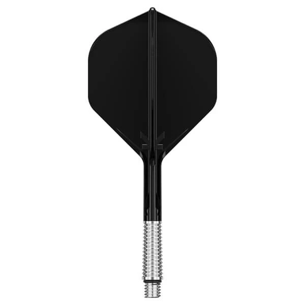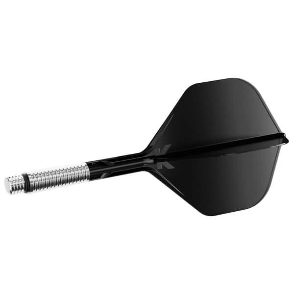 Basen på skaftet er fremstillet i let aluminium med radiale riller for bedre greb ved montering og afmontering. En gummiring og 2BA-gevind sikrer en fast og stabil forbindelse til dartpilen, samtidig med at systemet kan bevæge sig kontrolleret ved behov.