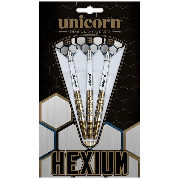Pilene er udstyret med patenterede Volute-stålspidser i guld, der er designet til at minimere bounce-outs og forlænge dartskivens levetid – et kendetegn på Unicorns tekniske innovation.