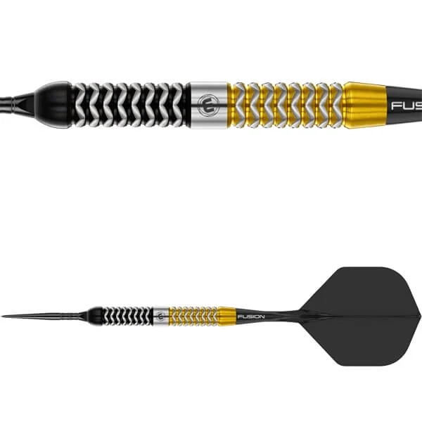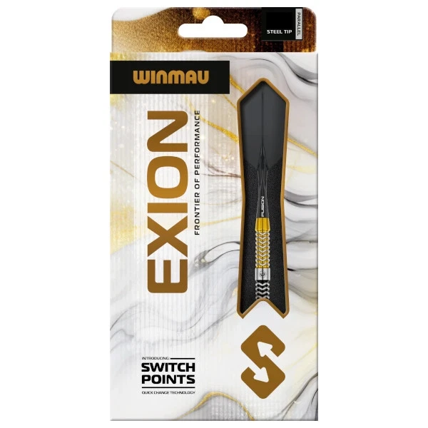 Winmau Exion fra Frontier Collection er udviklet til spillere, der ønsker klart definerede grebzoner, stabil balance og mulighed for at tilpasse deres setup. Dartpilen har et markant sort–guld–sort design, hvor den gyldne midtersektion både skiller s ...